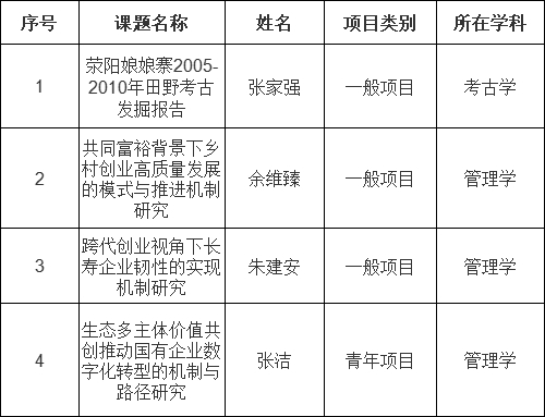 本年度我校共有两个学院获得立项资助,分别为:商学院3项,艺术与考古学院1项。立项项目涉及2个学科,分别为:管理学3项、考古学1项。其中3项是转公后新引进人才获得立项。