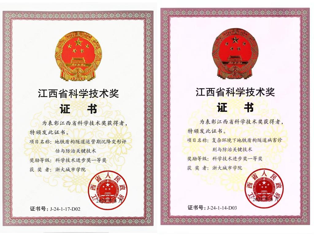 我校作为主要完成单位参与的两项科研成果,依托“山区土木工程安全与韧性全国重点实验室”“浙江省城市盾构隧道安全建造与智能养护重点实验室”等重大科研平台,双双荣获江西省科学技术进步奖一等奖!